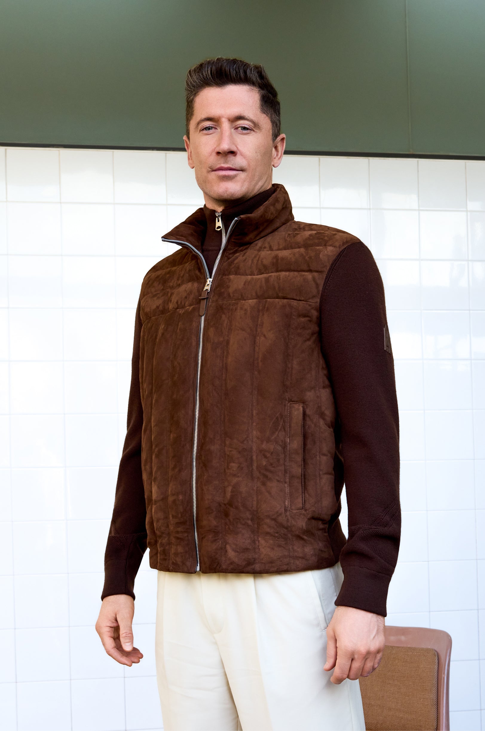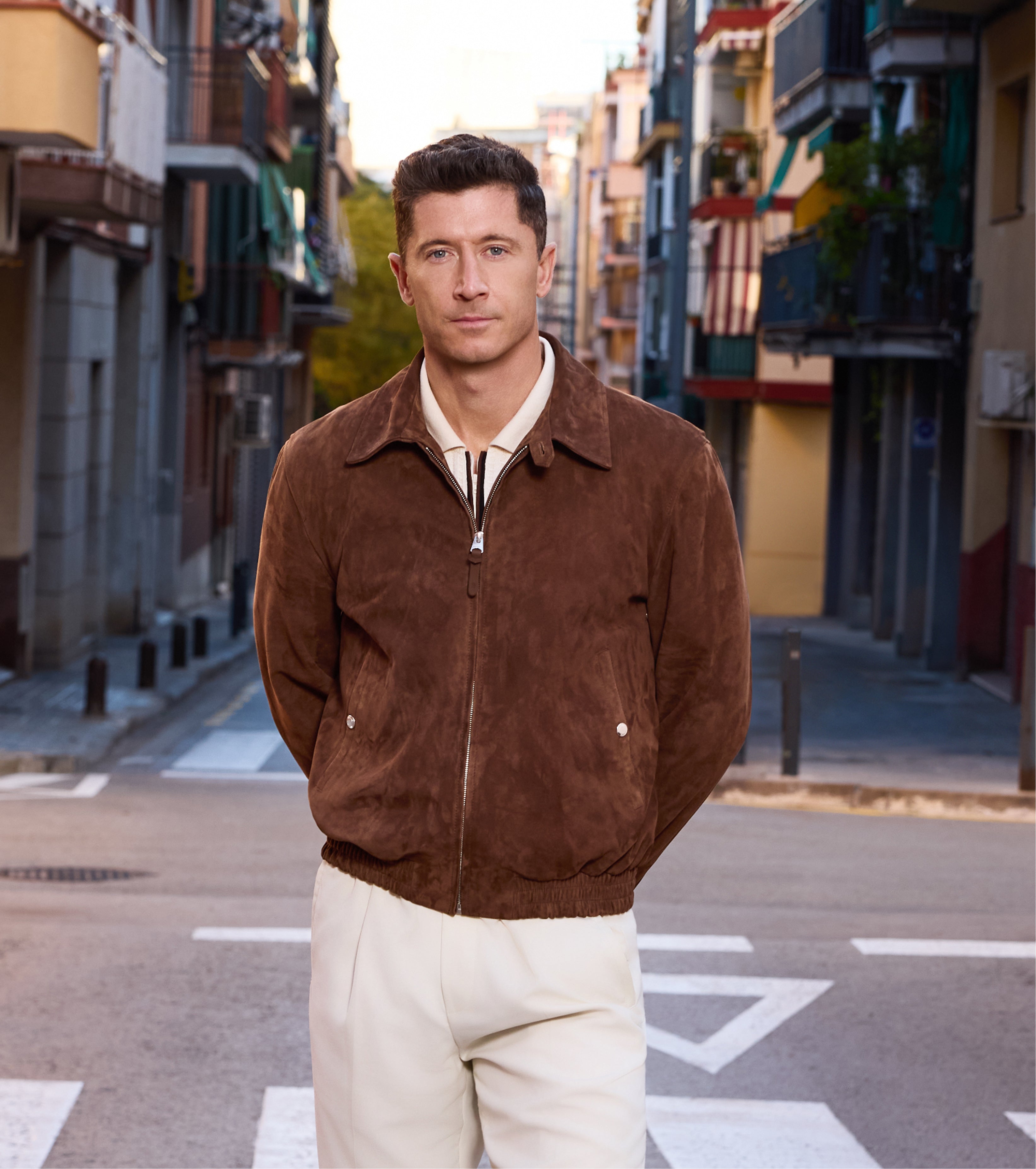 Featured in Series 05 are all-round performance pieces from the Spring/Summer 2026 collection, curated for the versatility, precision, and mobility of the striker. Lightweight layers, performance rainwear, newly introduced suede, and elevated sportswear designed to transition from training to everyday life. From two-in-one trenches to action-back brushed pure suede bomber, the campaign spotlights range of motion and adaptability between intensity and ease. "Designs that support not just how you look, but how you live and perform," Lewandowski notes.